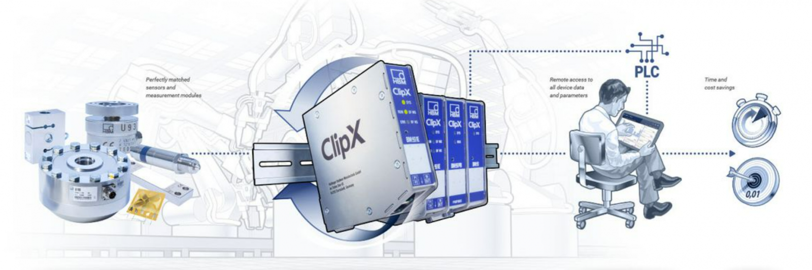 Bộ điều hòa tín hiệu công nghiệp ClipX với khả năng chống nhiễu, chính xác thích ứng với nhiệm vụ đo lường, bất kể là ứng dụng đơn kênh hay đa kênh, trong nhà máy sản xuất hay thử nghiệm. Tín hiệu đầu vào đa dạng có thể là lực, biến dạng, momen, áp lực, chuyển vị, nhiệt độ, dòng điện, điện áp,...Không giống như các bộ điều hòa tín hiệu thông thường, ClipX không yêu cầu modul riêng biệt mà có thể xử lý dữ liệu trực tiếp. ClipX có thể theo dõi, chuẩn đoán từ xa, tích hợp web cho các dự án IoT, giao tiếp với PLC để điều khiển các hệ thống tự động hóa,...